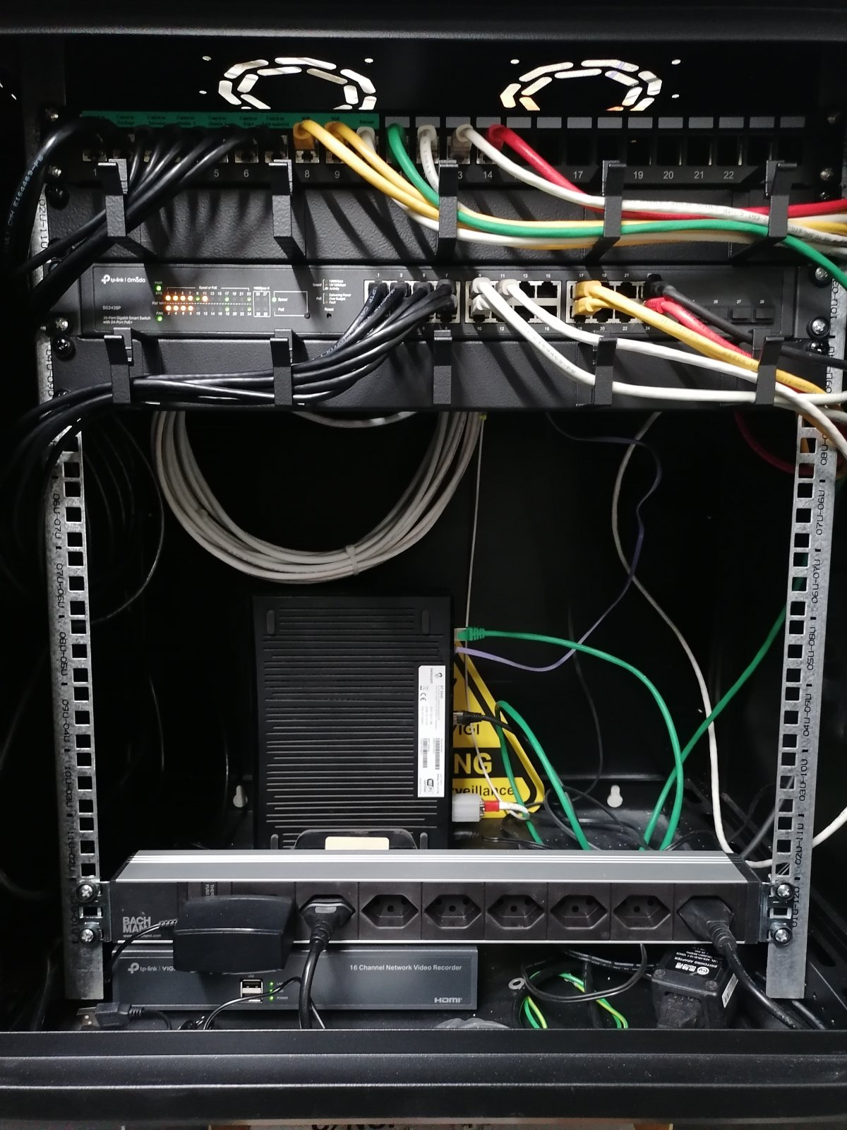 - Vidéosurveillance IP : Caméras IP TP-Link connectées à un enregistreur NVR avec stockage local et accès distant sécurisé.